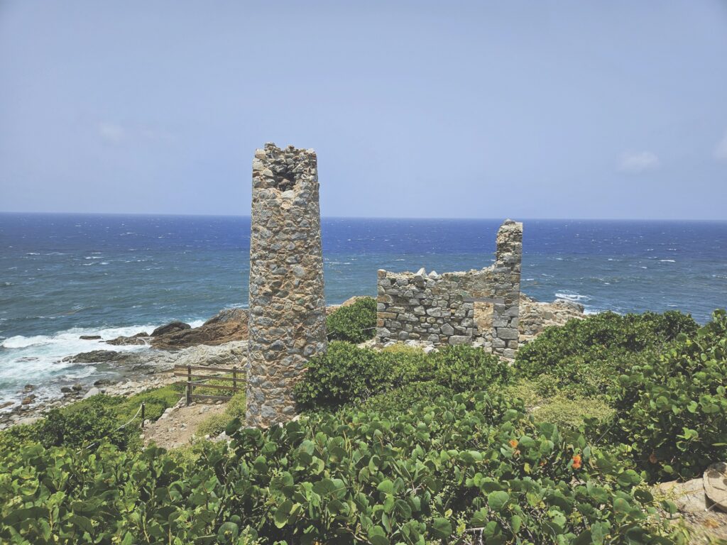 The Copper Mine National Park consists of about 18 acres. The buildings are still there having survived the catastrophic hurricanes of 2017. The engine house, chimney, mine shaft and another ruin are clearly visible and a rocky path takes you to all the vantage points. The mine shaft has been covered with a protective wire mesh for safety but you can still look down it and imagine the miners descending and working the mine some 170 years ago.