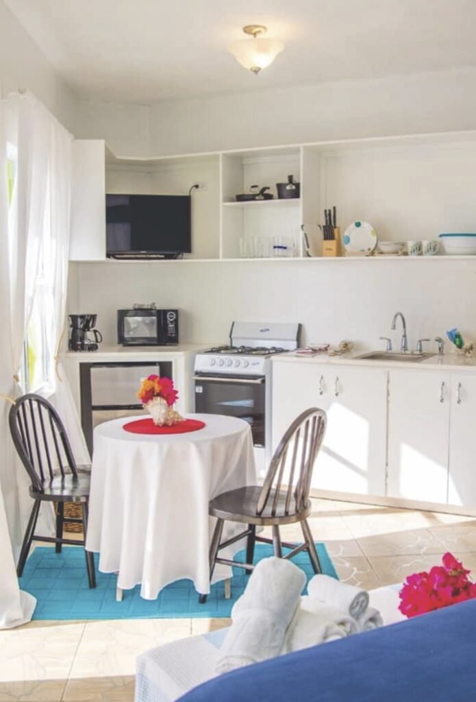 Established in the late 1960s, Fischer’s Cove was started by Andy and his late wife, Norma Flax, when they transformed a gift of land from Andy’s grandfather. Over the years, it has blossomed into a beloved beachfront property that embodies authentic Virgin Gorda hospitality. Still proudly family-owned and operated, Fischer’s Cove offers a warm, welcoming atmosphere where guests are treated like family. Whether you’re seeking a romantic retreat, a fun-filled family vacation, or a peaceful solo escape, experience the magic of a place where history and hospitality come together. Surrounded by lush gardens and a pristine half-mile stretch of white sand beach, the property features a variety of cozy accommodations—four charming Beach Cottages and eight Beach Studios—each designed with comfort and island style in mind. Fully equipped with Wi-Fi, air conditioning, a TV, a kitchenette, and private showers, these spaces blend modern convenience with vibrant Caribbean charm. The cottages, with their soft whites, tans, and colourful accents, evoke a relaxed yet stylish atmosphere that captures the beauty of the islands.